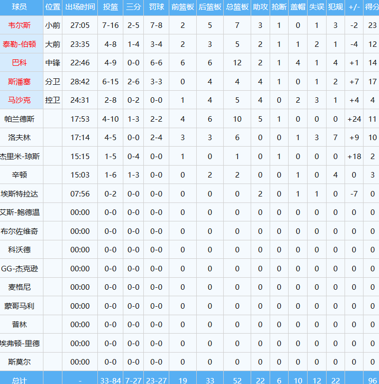 灰熊全队总共抢到52板,其中19个前场板,完全碾压了开拓者,具体数据如下: